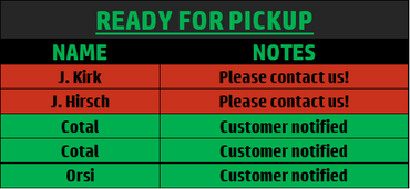 These units are ready to be picked up. It is greatly appreciated if these units are picked up as soon as conveniently possible to create room in our small shop. If you are unable to pickup your unit at this time, please notify us and we will work with you accordingly.